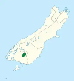 | Distribution of Oligosoma aureocola on a map of the South Island Known native range