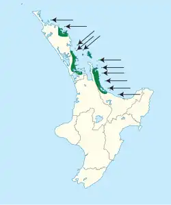 It is endemic to New Zealand and is found throughout the northeastern part of the North Island, between North Cape and the Bay of Plenty, as well as numerous islands off the east coast of the North Island, where it is most commonly found.[6][8] To help protect the species, skinks were released into the Rotoroa Island sanctuary in 2015.[9]