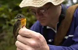 - ^ a b c d Schmidt, B.K.; Foster, J.T.; Angehr, G.R.; Durrant, K.L.; Fleischer, R.C. (2008). "A new species of African Forest Robin from Gabon (Passeriformes: Muscicapidae: Stiphrornis)". Zootaxa. 1850 (1): 27–42. doi:10.11646/zootaxa.1850.1.2.