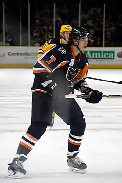 He was drafted by the Philadelphia Flyers 196th overall in the 2009 NHL Entry Draft and signed a two-year entry-level contract with the Flyers on 15 March 2011 after his third season of college hockey at St. Cloud State.[2][3]