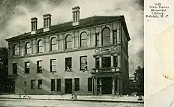 Richard B. Raney funded the Olivia Raney Memorial Library in his late wife’s memory, in response to a public appeal posted on behalf of a Raleigh Chamber of Commerce soliciting committee. Before this, the library was planned to be funded gradually through stockholder subscription fees.[6] The library was chartered in 1899; a deed was accepted February 28, 1900, for a lot in downtown Raleigh on the southwest corner of Hillsboro and Salisbury streets.[5] The library opened January 24, 1901, with a local newspaper describing it as "the most notable event in the history of North Carolina."[7]