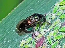 - ^ P. Winterhagen Strategy for sneaking into a host’s home: The cukoo wasp Omalus biaccinctus (Hymenoptera: Chrysididae) insert its eggs into living aphids that are the prey of its host Archived 2021-04-30 at the Wayback Machine
