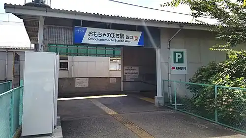 Omocha-no-Machi Station (おもちゃのまち駅, Omocha-no-Machi-eki) is a railway station on the Tobu Utsunomiya Line in Mibu, Tochigi, Japan, operated by the private railway operator Tobu Railway. The station is numbered "TN-35".