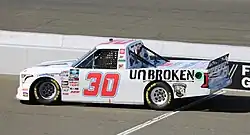 On November 30, 2021, it was announced that Tate Fogleman would race full-time in the No. 30 Toyota Tundra full-time.[7] Fogleman left the team after Gateway. Colin Garrett was scheduled to drive the No. 30 truck at Sonoma. However, due to the late notice of this opportunity, Garrett was unable to receive his drug test back in time to be able to compete. Josh Bilicki filled in starting P26 and finishing P30 due to a crash.[8] Joey Gase drove the truck at Knoxville. Camden Murphy drove the No. 30 truck at Nashville. On July, Kaden Honeycutt Honeycutt had signed a three race deal to drive the No. 30 truck for the team in the races at Pocono, Richmond, and Kansas races.[9] Honeycutt's breakthrough moment would be at Bristol, in which he finished in the top-15.[10] Chris Hacker would drive the No. 30 truck in the TSport 200 at Lucas Oil Indianapolis Raceway Park.[11]