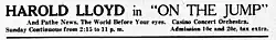 On the Jump is a 1918 American short comedy film featuring Harold Lloyd. A print of the film survives in the film archive of the Museum of Modern Art.[1] Like many American films of the time, On the Jump was subject to cuts by city and state film censorship boards. For example, the Chicago Board of Censors cut the scene of the man thumbing his nose.[2]