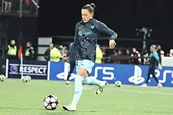 On 13 July 2020, Batlle signed a two-year contract with an option for a third with English FA WSL club Manchester United.[16] She made her debut on 6 September 2020, starting in the season opener as United drew 1–1 with defending champions Chelsea.[17] In total, Batlle appeared in 23 of United's 27 games during the season and was named Women's Player of the Year at the end of the campaign.[18] In the first league game of the 2021–22 season, Batlle scored her first goal for the club in a 2–0 win against Reading.[19] She made 21 league appearances in the 2021–22 campaign and was recognised with PFA Team of the Year honours.[20] Before her contract expiration, United wanted her to stay and offered her several increased contracts, but Batlle made the decision to return to Barcelona.[21]
