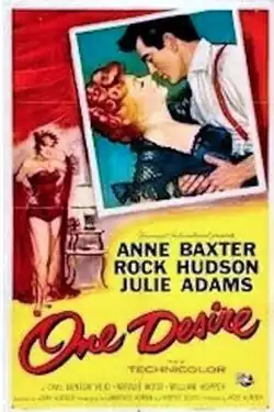 One Desire is a 1955 Technicolor drama romance film directed by Jerry Hopper and starring Anne Baxter, Julia Adams and Rock Hudson. Described as a "rugged story of oil-boom Oklahoma in the early 1900s", it was adapted from Conrad Richter's best-selling 1942 novel Tacey Cromwell.[1] Baxter portrays a gambling house owner, Hudson a card dealer turned bank president and Adams the woman who comes between them.[2] A young Natalie Wood is also in a featured role.