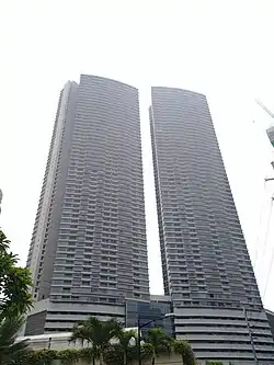 One Shangri-La Place is a residential development with twin residential towers situated in Mandaluyong, Metro Manila, Philippines. Both of its towers are 64-storeys high with a height of 227 meters (745 ft), making them the tallest twin towers in the Philippines. The building's podium also hosts a wing of the Shangri-La Plaza mall, which opened in 2013.[2][3]