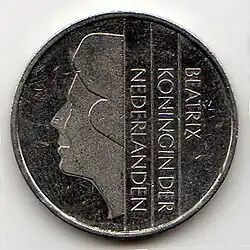 The Dutch 1 guilder coin featuring Queen Beatrix on its obverse was a unit of currency of the Dutch guilder minted between 1982 and 2001.