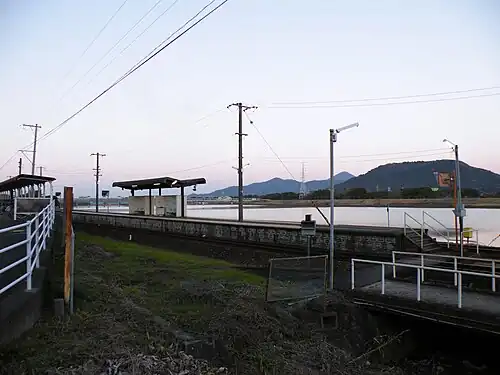 The station was opened by the Karatsu Kogyo Railway on 13 June 1899 as an additional station on a stretch of track which it had laid in 1898 from Miyoken (now Nishi-Karatsu) to Yamamoto. On 23 February 1902, the company, now renamed the Karatsu Railway, merged with the Kyushu Railway. When the Kyushu Railway was nationalized on 1 July 1907, Japanese Government Railways (JGR) took over control of the station. On 12 October 1909, the line which served the station was designated the Karatsu Line. With the privatization of Japanese National Railways (JNR), the successor of JGR, on 1 April 1987, control of the station passed to JR Kyushu.[4][5]