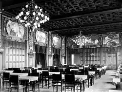 The restaurant had linen tablecloths and napkins on the tables, and the walls was covered with wooden panels.[1] The ladies of Stockholm's socialite were invited and a new trend of serving coffee was introduced.[2] The restaurant was originally called Terrassen ("The Terrace") after its open-air section.[1]