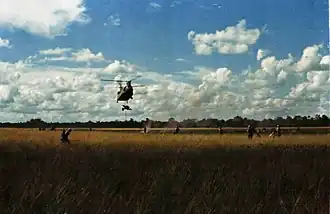 The operation also employed two brigades of the Vietnamese Mobile Guerrilla Forces (MGFs) whose primary objective was to locate and engage VC forces as well as to destroy their base camps along the Cambodian border. These brigades moved rapidly to exploit recently acquired intelligence on enemy installations and movements and were frequently transported by helicopter to locations throughout Tây Ninh Province. The MGFs utilized guerrilla warfare tactics that were often employed by the VC against U.S. and ARVN units.[3]