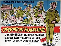 Operation Bullshine is a 1959 British colour comedy film directed by Gilbert Gunn and starring Donald Sinden, Barbara Murray and Carole Lesley.[1] The working title of the film was Girls in Arms that features as a marching song in the film.[2] Gunn had filmed Girls at Sea the previous year. The new title, based on an American euphemism for a very British word with the same meaning (bullshite), comes from the frenzied activity preparing for their brigadier's surprise inspection. The film features 1956 Olympic gold medallist Judy Grinham as a physical training instructor.