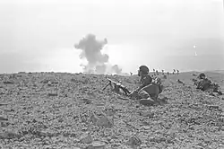Egypt had launched the War of Attrition in order to weaken Israel's hold on the territories in the Sinai it had captured during the 1967 Six-Day War. While the war raged mainly along the Suez Canal, Israel hoped to secure a ceasefire by showing Cairo that it could strike anywhere in Egypt and by presenting the Egyptian leadership with the prospect of an all out conflict for which Egypt was likely ill-prepared.[2] Refusing to limit the war to the canal front, in January 1970 Israel launched Operation Priha, a series of Israeli Air Force strikes against targets in the Egyptian heartland, while its ground forces were tasked with a strike at the isolated and lightly garrisoned Shadwan. The aim of the raid was to capture Egyptian POWs to be exchanged for Israeli prisoners in Egypt, and to sabotage a local radar post which was deemed a threat to Israeli shipping in the Gulf of Suez.[3][4]