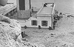 A force led by Lt. Yitzhak Kotler, meanwhile, arrived at the lighthouse. Despite expecting significant resistance, little movement was spotted at the site, and at 12:00 the Israeli troops stormed the building. A few rooms were initially found to be empty, but fire soon erupted from a building on the western side of the compound, hitting Kotler and leaving the force leaderless. Hasdai instructed one of Kotler's squad's to flank the structure and clear it out using grenades. By 12:57 they managed to secure the building, which was found to be defended by only a pair of Egyptian soldiers, one of whom was killed and the other injured. An Israeli helicopter soon arrived to ferry both the Egyptian officer and Kotler to hospital, though the latter died of his wounds.[4][5]