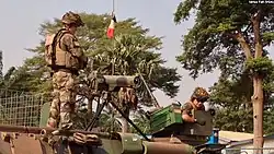 On 20 February 2014, elements of the Épervier Force in Chad redeployed from N'Djamena to the Central African Republic to reinforce Sangaris.[55] On 23 February 2014, an armoured vehicle sustained an accident on a laterite road near Bouar; the three-man crew was wounded, and one of them, a corporal of the Régiment d'infanterie-chars de marine, later died of the injuries sustained in the crash.[56]