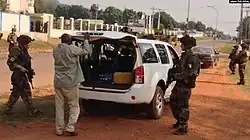 On 28 January, 300 Séléka soldiers were evacuated from Kasaï camp by Rwandese soldiers.[53] On the same day, French troops were attacked by Séléka elements near RDOT camps, on the Northern side of the town, where around 1000 Séléka troops were stationed. The French replied in kind, using ERC 90 Sagaie wheeled tanks and killing a dozen Séléka fighters.[54]