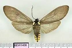 1. ^ Vincent, Benoît, Michel Laguerre & Rodolphe Rougerie, 2009, Contribution à la connaissance du genre Opharus Walker avec description de deux nouvelles espèces. Apport des codes barres ADN (Lepidoptera: Arctiidae), Bulletin de la Société entomologique de France 114 (1): 69-78.