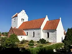 Orø Church (Danish: Orø Kirke) is located on the eastern edge of the village of Bybjerg. The church dates to the late 12th century. Its choir and nave were built in the 1100s, while the tower, church porch, and sacristy are 15th and 16th century additions. It was heavily renovated in the late 19th century, and the original Romanesque architectural style was altered.[10] The church's original Romanesque frescos had also been whitewashed, and were not rediscovered until 2001.[11]