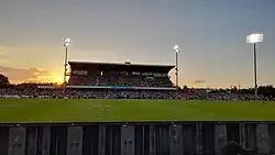 The Western Stand at sunset during the Wests Tigers vs St George Illawarra Dragons match in April 2024