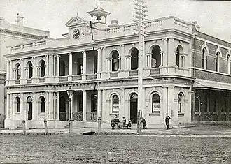 The construction of new post offices continued throughout the depression years under the leadership of Walter Liberty Vernon, who held office from 1890 to 1911. While twenty-seven post offices were built between 1892 and 1895, funding to the Government Architect's Office was cut from 1893 to 1895, causing Vernon to postpone a number of projects.[1]