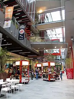 The mall features a 140m shopping street discovery walk and a green roof which are both open 24 hours to the public. Designed by Japanese design house Super Potato, the green roof features 3 large living walls and balcony rail on the 11th floor and 2 lower green walls on the 12th-floor roof terrace.[4] There is also a biological pond located on the 12th storey of the green roof.[5]