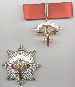 - Grand Cross (cross in a sash over the right shoulder and a gold plaque)