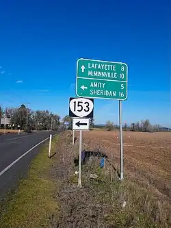 Oregon Route 153 is an Oregon state highway running from OR 18 in Bellevue to OR 221 near Hopewell. OR 153 is known as the Bellevue-Hopewell Highway No. 153 (see Oregon highways and routes). It is 14.34 miles (23.08 km) long and runs east–west, entirely within Yamhill County.