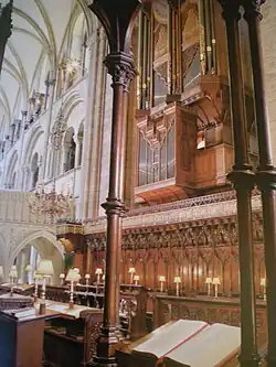 The organs of Chichester Cathedral are the major source of instrumental music at the cathedral, being played for daily services and accompanying the choir, as well as being used for concerts and recitals. There has been organ music at Chichester Cathedral almost continuously since the medieval period, with a break in the mid-17th century during the Commonwealth period.