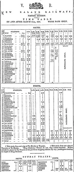 - ^ "OPENING OF THE RAILWAY TO TAHORAITE. DAILY TELEGRAPH". paperspast.natlib.govt.nz. 16 December 1884. Retrieved 23 September 2021.