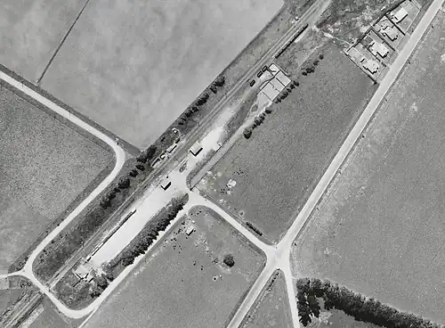 There was a creamery from about 1905, which became a butter producing dairy factory in 1908.[20] By 1918 there was a large cheese factory.[21] In 1922 more frequent trains were provided for carrying cheese,[22] which also came from Tamaki Co-operative Dairy Co at Te Rehunga.[23] From 1997,[24] until the 2015 closure, trains carried milk from Oringi for processing at Hāwera.[25]