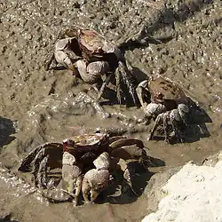 Orisarma dehaani is a mudflat crab of the Sesarmidae family (subfamily Sesarminae), which is endemic to East Asia.[1][2] It typically lives in mangrove swamps and is known under the common name kurobenkeigani in Japan.[3][2] O. dehaani has an uneven carapace, which is divided into four frontal lobes. Its walking legs are covered with thick, long setae (hairs), while the palm surfaces of its rough, granular chelipeds (claws) contain tubercules.[2]