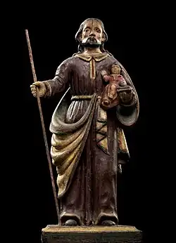 Celestino Avilés Meléndez (1925-2004), a santero from Orocovis, saved the dying art from his workshop. Santeros are folk artists who create wooden, religious statuettes called Santos.[15] The folk artists were dispersed around Puerto Rico and were few in number. Avilés' initiative, in 1983, for santeros to meet continues to this day with the Encuentro Nacional de Santeros taking place in Orocovis, the third week in December annually. Also, Avilés' establishing the Museo Orocoveño Familia Avilés Inc. in 1982, a museum for santeros art, revived the culture and art of santeros and santos and by 2019, there were more than 300 santeros making santos in Puerto Rico.[16]