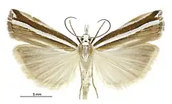 - ^ a b c d Gaskin, D. E. (1975). "Revision of the New Zealand Crambini". New Zealand Journal of Zoology. 2 (3). The Royal Society of New Zealand: 304. doi:10.1080/03014223.1975.9517878. Retrieved 21 January 2017.