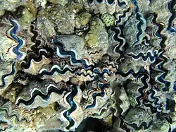 The 2000 surveys (Obura, et al.) found that the extent of algae cover showed evidence of high nutrient levels by a high cover of filamentous wispy brown algae on all surfaces including rock, coral rubble, Halimeda and other algae. Live Coral Cover was extremely low at less than 5%, though coral heads typical of a healthy reef were abundant though dead, which suggested there was chronic mortality over an extended period of time.[6] At inner leeward lagoon sites, coral species were identified typical of high-silt environments (e.g. Montipora efflorescens, Acropora lovelli), growing in fine calcareous silt in aggregated patches together with abundant giant clam (Tridacna). Towards the center and windward side of the lagoon the sandy bottom became coarser with coral growth developing around dead bommies and small patch reefs. Coral diversity increased progressively towards the lagoon channel, with increasing presence of outer-reef species.[6] The most abundant coral species at Orona were: Goniastrea stelligera, Goniastrea edwardsi, Echinopora lamellosa, Leptastrea purpurea, Cyphastrea chalcidicum, Montipora efflorescens, Pavona varians and Pavona clavus.[6]