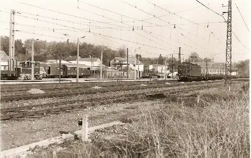 An SNCF Class BB 4200 locomotive at the station in 1979
