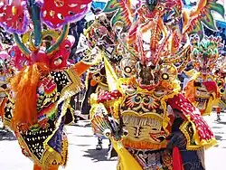 Despite its economic decline, the city attracts numerous tourists to its Carnaval de Oruro, considered one of the great folkloric events in South America for its masked "diablada"[7] and Anata.[8] The Oruru Carnival was discovered in 1559, when the Augustinian priests were on the land, the festival is in honor of the Virgin of Candlemas.[9]