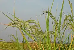 Oryza is a genus of plants in the grass family.[3][4] It includes the major food crop rice (species Oryza sativa and Oryza glaberrima). Members of the genus grow as tall, wetland grasses, growing to 1–2 metres (3–7 ft) tall; the genus includes both annual and perennial species.[5]
