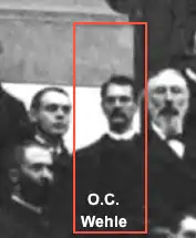 ![]() Oscar C. Wehle in Nov. 1885 at convention of Western Association of Architects in St. Louis.[1] | |