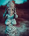 Awuku has said that his work "explores pre-colonial culture but also addresses decolonized practices in contemporary culture"; it looks at the essence of identity of the black body, while advocating for women and seeking to ask empowering questions in society.[7] Referring to the motif of the traditional mask, he says, "My constant use of the ritual mask is based on the belief that it conceptually turns its wearer into the spirit represented by the mask itself."[5]