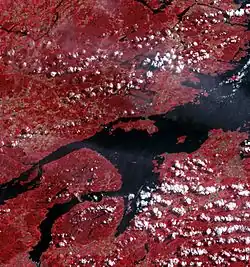 False-colour image of middle parts of Oslofjorden. North is to the left