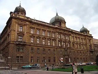 Ostbahn (German: for Eastern Railway) in the General Government, were the Nazi German railways in occupied Poland during World War II, subordinated to the General Directorate of Eastern Railways (German: Generaldirektion der Ostbahn, Gedob) in occupied Kraków; a branch of the Deutsche Reichsbahn National Railway of Germany in the newly created Generalgouvernement territory under Hans Frank.[1][2] The trains were used to cleanse and resettle interwar Poland with the German-speaking colonists in the name of "Lebensraum",[3] and played an essential role in the mass deportations of Jews to extermination camps during the Holocaust.[2]