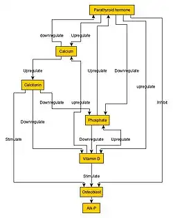 | Condition | Calcium | Phosphate | Alkaline phosphatase | Parathyroid hormone | Comments |
