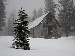 The Ostrander Ski Hut is a two-story stone structure built in 1941 by the Civilian Conservation Corps specifically for cross-country skiers.[3] It was intended to be part of a larger system of winter trails and huts along the Sierra Crest that never were developed.[4]