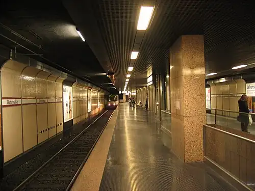 Oststraße station is a major underground station on the Düsseldorf Stadtbahn lines U70, U74, U75, U76, U77, U78 and U79 in Düsseldorf. The station lies on Oststraße in the district of Stadtmitte.