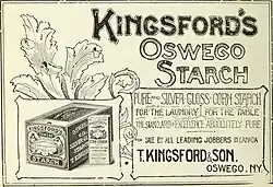 - ^ "Kingsford Starch". Oswego County Historical Society. 135 East Third Street, Oswego, New York. 2017.