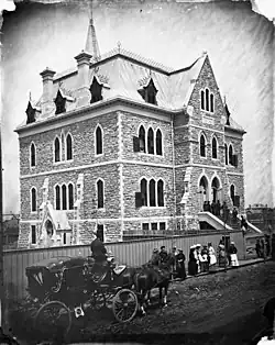 In 1892, the school became the first public secondary school in Ontario to hire a female teacher.[4] Four new classrooms were added on the south side in 1892, moving the front wall towards the street and enclosing the front entrance stairs.
