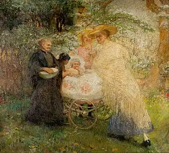 Under the Nazis, Heichert's Happy Family in Garden, was auctioned at a forced sale at Lempertz auctioneers. A settlement was reached following a claim for restitution by the Max and Iris Stern Foundation. [2]