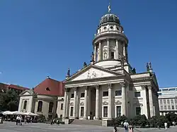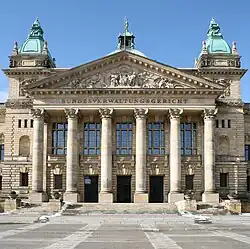Otto Lessing's sculpture and architectural decoration adorns many historic government buildings in Germany, such as the Prussian House of Lords,[6] Reichstag (German Imperial Parliament), the Neuer Marstall (Imperial Stables), and the Reichsgericht (Supreme Court in Leipzig). His interior work includes the bronze doors in the Hall of Honor at the Zeughaus (Berlin Armory) and striking glass mosaics inside the Martin-Gropius-Bau. Lessing's religious works include the three main doors and interior reliefs at the Berliner Dom, portals and interiors of the Deutscher Dom, the Emperor's entrance to Kaiser-Wilhelm-Gedächtniskirche and the interior of St. Michaelis Church, Hamburg. The Borsig Palace is an example of his work for private residences. The Berlin State Library and Konzerthaus Berlin are also decorated by Lessing.[2]