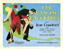 Our Dancing Daughters is a 1928 American synchronized sound drama film starring Joan Crawford and John Mack Brown about the "loosening of youth morals" that took place during the 1920s. The film was directed by Harry Beaumont and produced by Hunt Stromberg. While the film has no audible dialog, it was released with a synchronized musical score with sound effects using both the sound-on-disc and sound-on-film process.